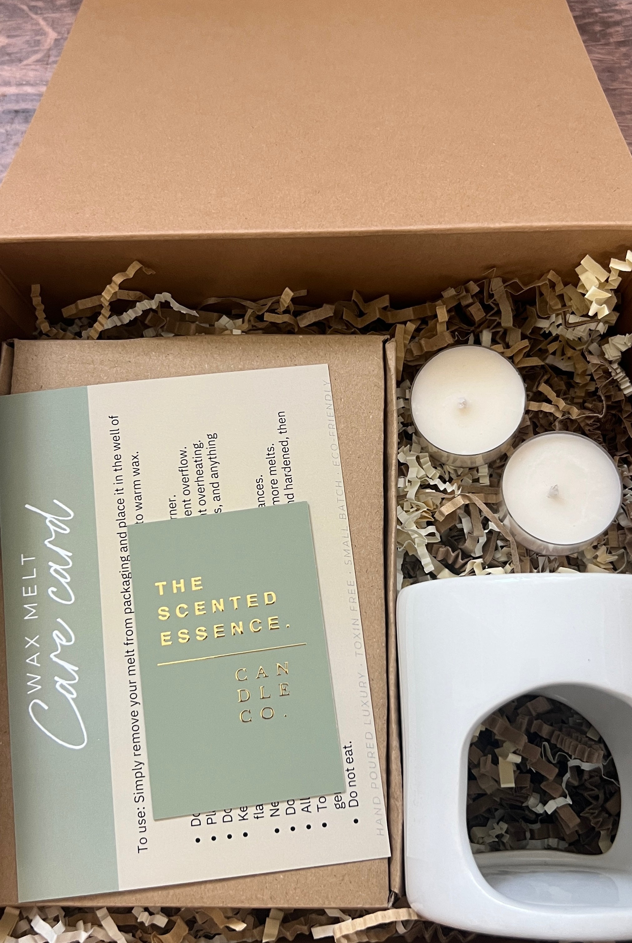 Discover the perfect gift with our Gift Sets Collection — thoughtfully curated to make every occasion special. Featuring our luxurious Wax Melt Gift Box Set, this beautifully wrapped bundle includes a stylish wax burner, a set of tealights, and a wax melt pack of your choice. Each set is elegantly gift-wrapped with a sage green ribbon and a seasonal gift tag, 'ready to gift' and delight your loved ones.